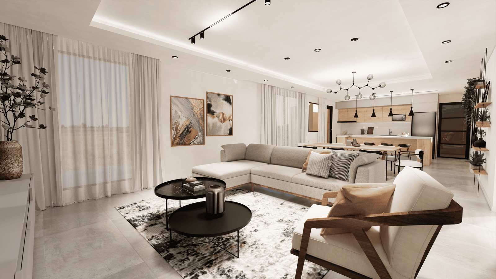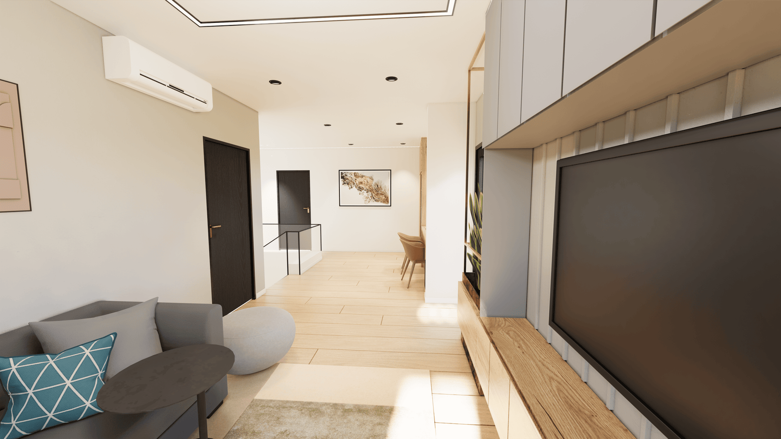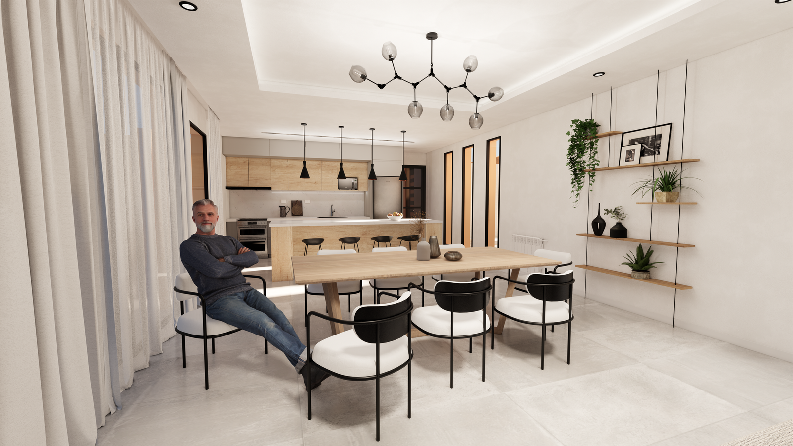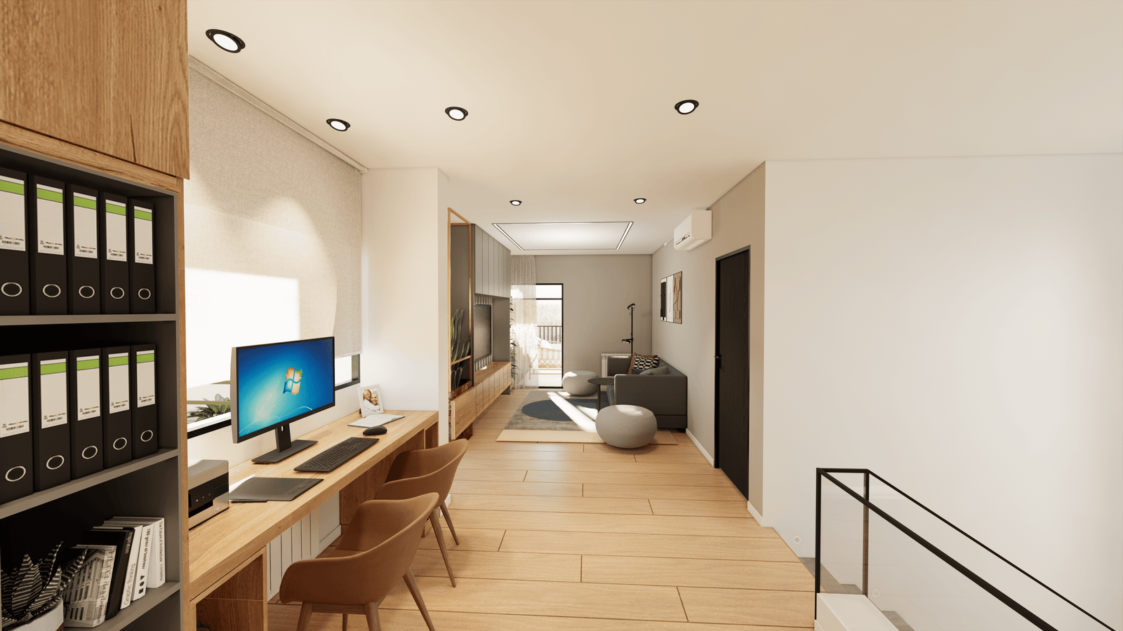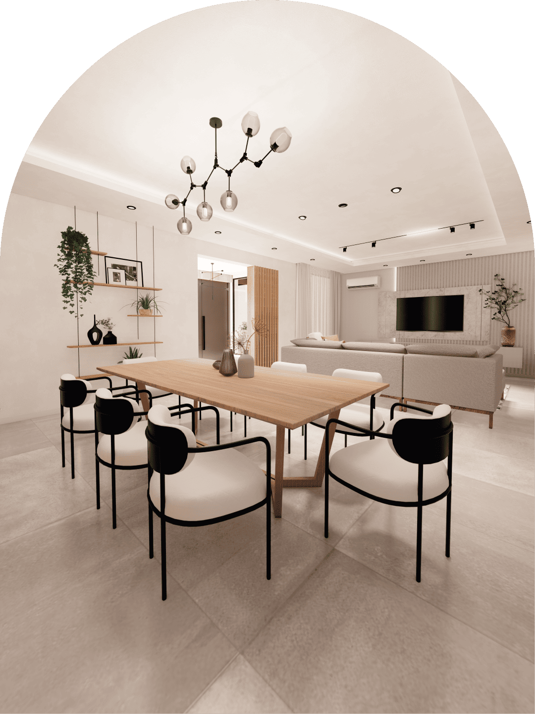 Se asumió este proyecto integral durante la fase de construcción, para crear un hogar funcional y estéticamente armonioso en esta vivienda de 300m², distribuida en dos plantas. La planta baja incluye un hall de entrada acogedor, un espacio de estar y comedor integrados, una cocina moderna con muebles a medida, baños contemporáneos, un lavadero práctico y una galería exterior perfecta para el ocio. En la planta alta, diseñamos habitaciones tranquilas, el vestidor, un playroom versátil y un escritorio funcional. Se seleccionaron cuidadosamente los pisos, revestimientos y la paleta de colores, asegurando coherencia y estilo en toda la vivienda. Diseñamos muebles a medida, elegimos el equipamiento de cocina y seleccionamos mobiliario del mercado que complementa el diseño interior. Además, planificamos un sistema de iluminación que realza cada espacio y diseñamos cielorrasos que añaden distinción.