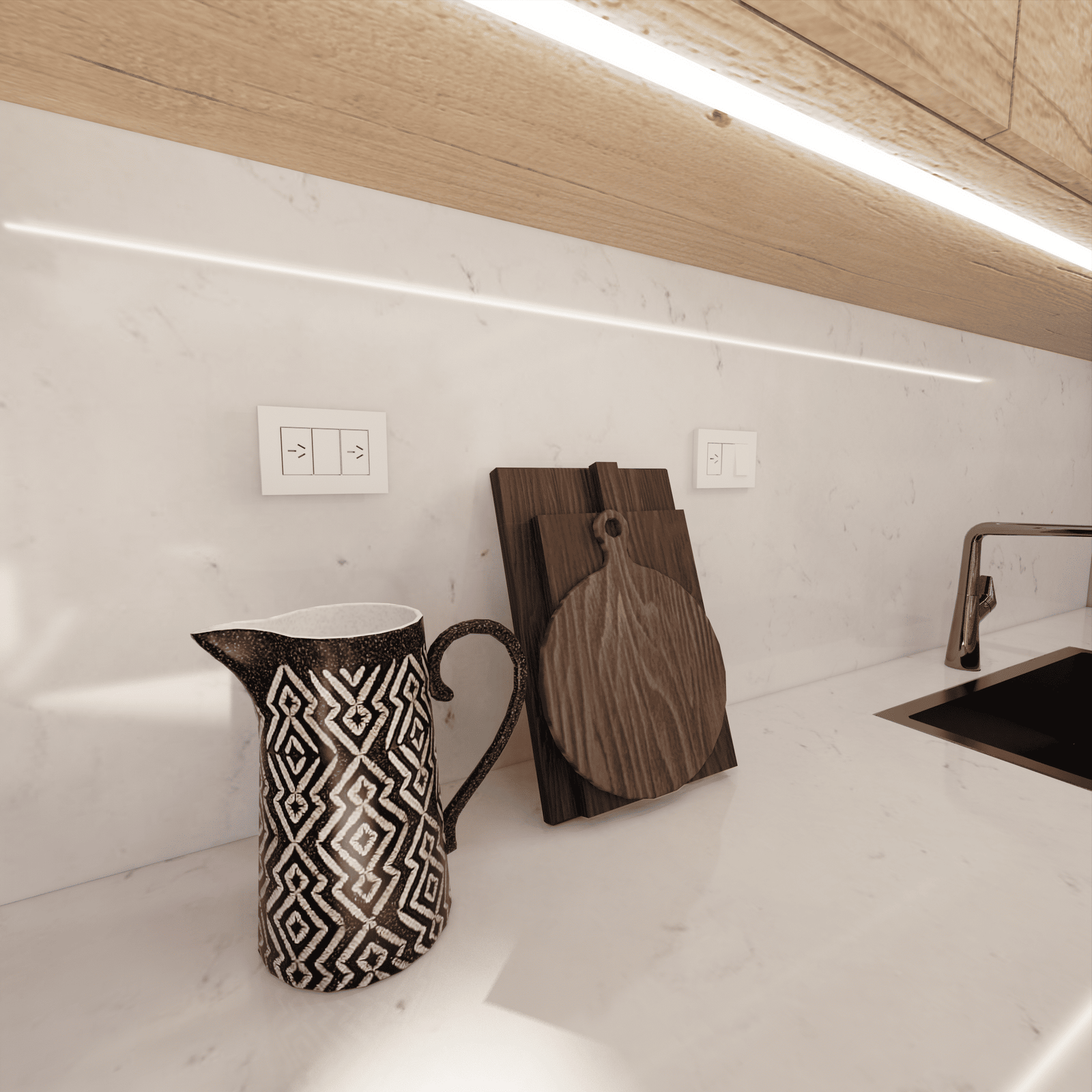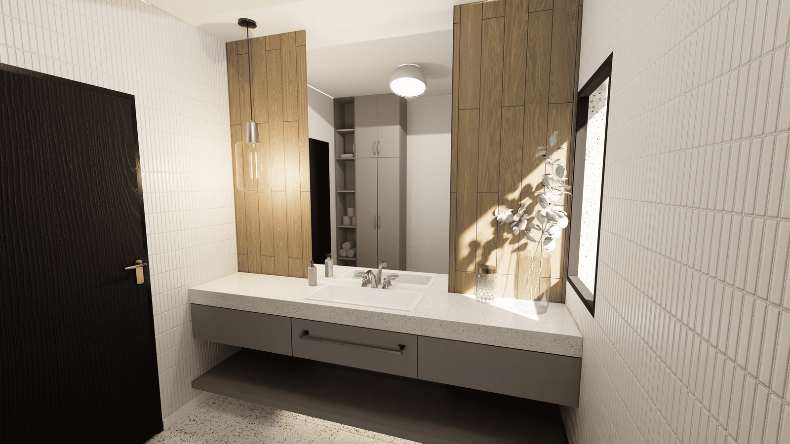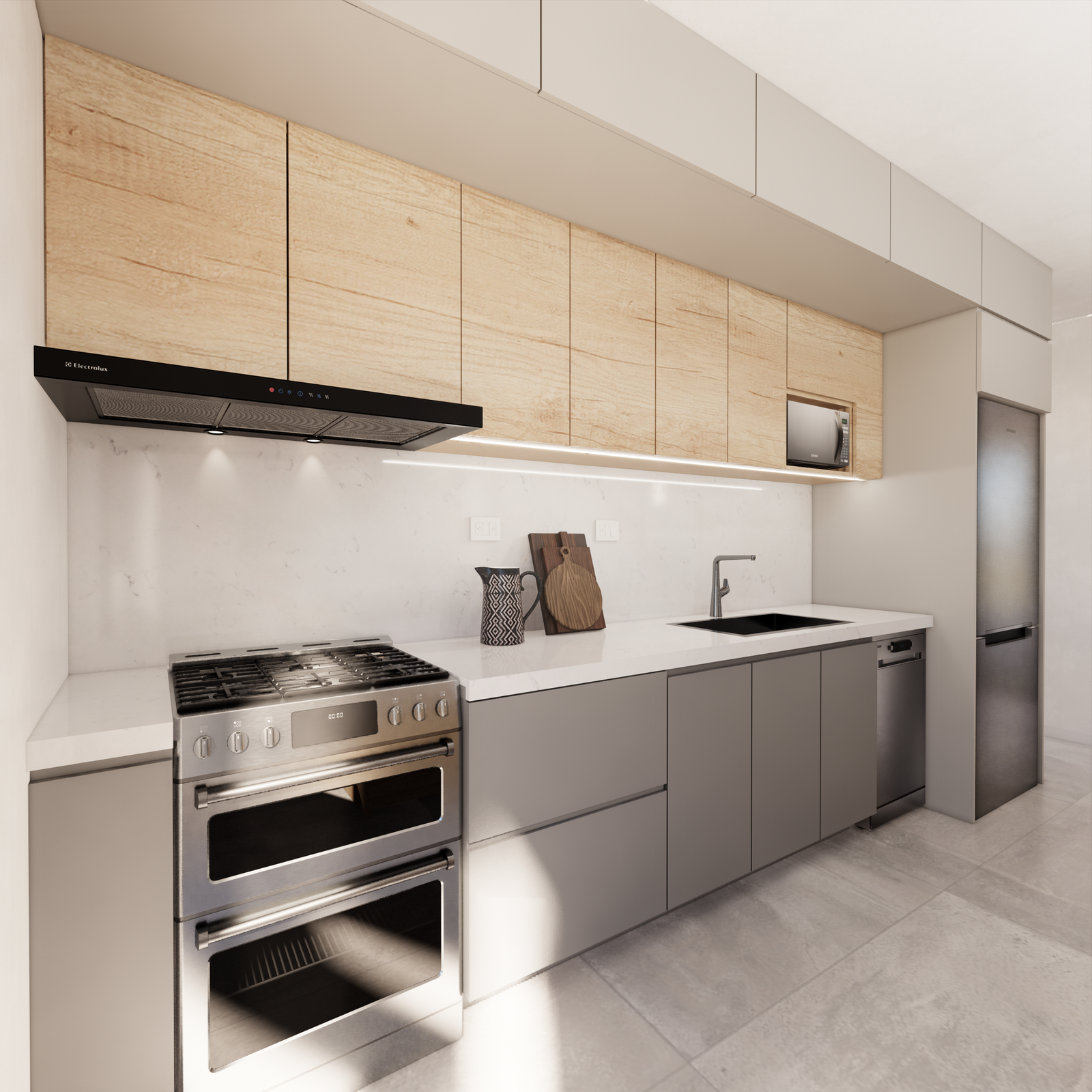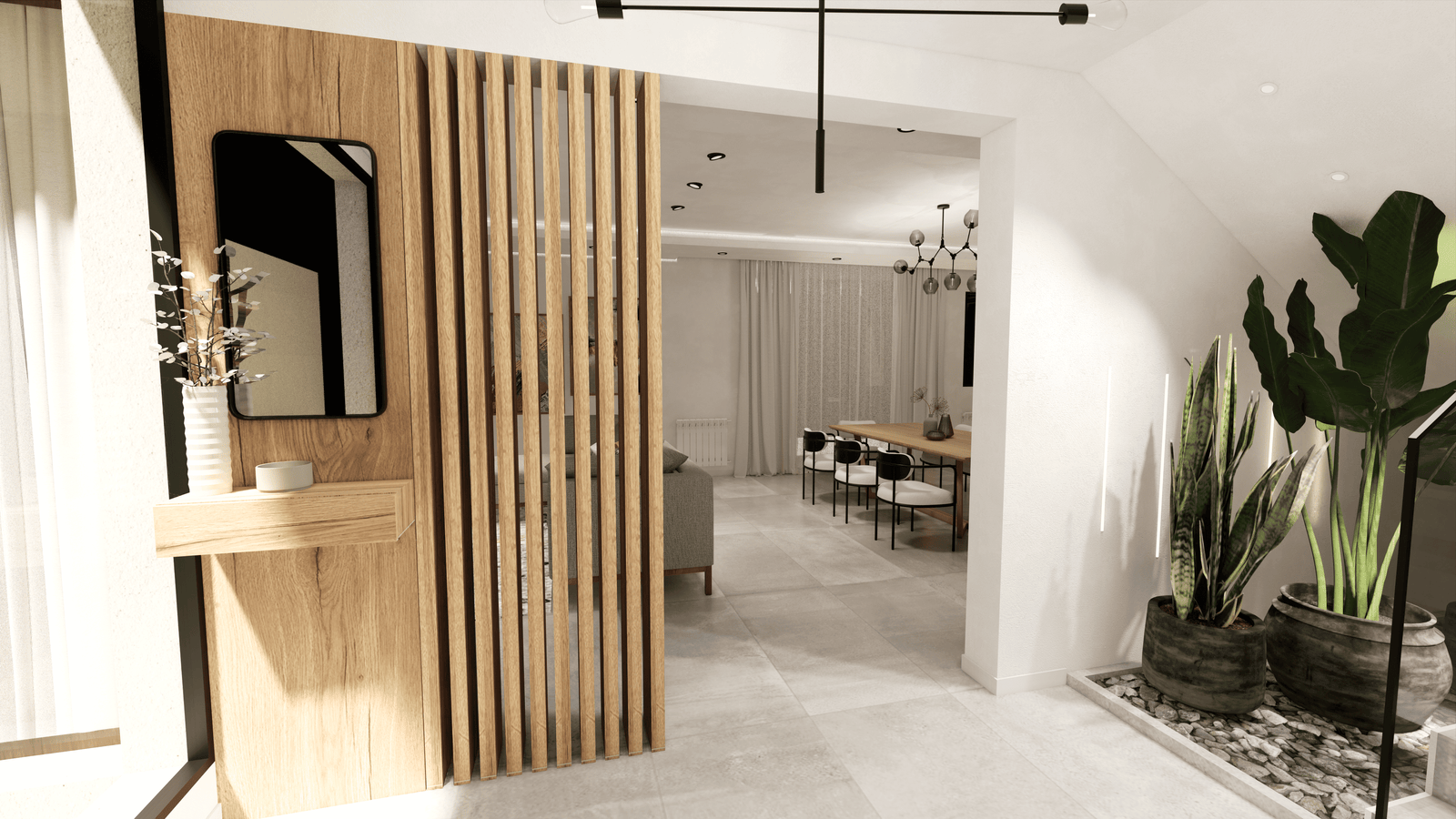 Se asumió este proyecto integral durante la fase de construcción, para crear un hogar funcional y estéticamente armonioso en esta vivienda de 300m², distribuida en dos plantas. La planta baja incluye un hall de entrada acogedor, un espacio de estar y comedor integrados, una cocina moderna con muebles a medida, baños contemporáneos, un lavadero práctico y una galería exterior perfecta para el ocio. En la planta alta, diseñamos habitaciones tranquilas, el vestidor, un playroom versátil y un escritorio funcional. Se seleccionaron cuidadosamente los pisos, revestimientos y la paleta de colores, asegurando coherencia y estilo en toda la vivienda. Diseñamos muebles a medida, elegimos el equipamiento de cocina y seleccionamos mobiliario del mercado que complementa el diseño interior. Además, planificamos un sistema de iluminación que realza cada espacio y diseñamos cielorrasos que añaden distinción.